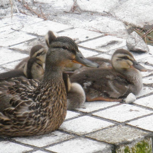 カモヒナを観察しに公園に行けば黒い大きな鳥さんと、茶色い小さな鳥さんに囲まれるオラ。